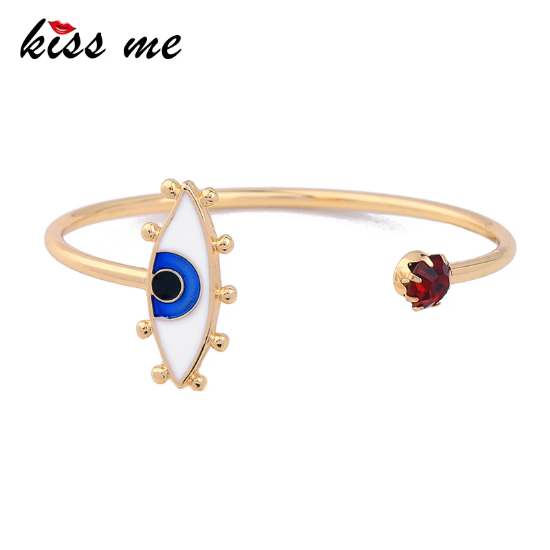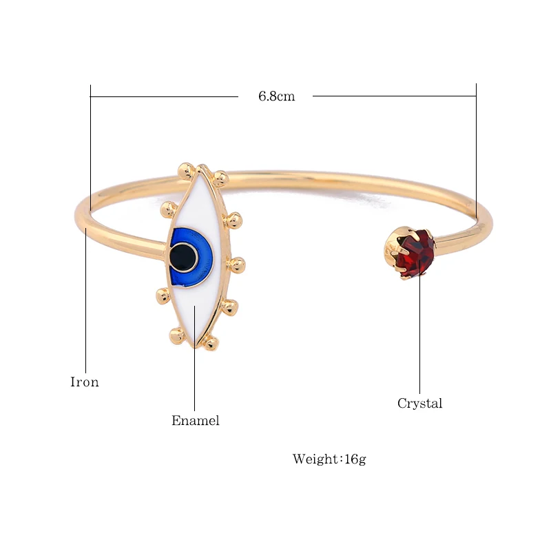 Production name ::Gold Color Iron Alloy Enamel Eye Crystal Cuff Bracelets & Bangles