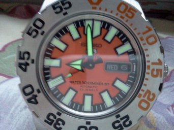 세이코SNZF49명의 스테인레스강 오렌지 다이얼 자동 워치