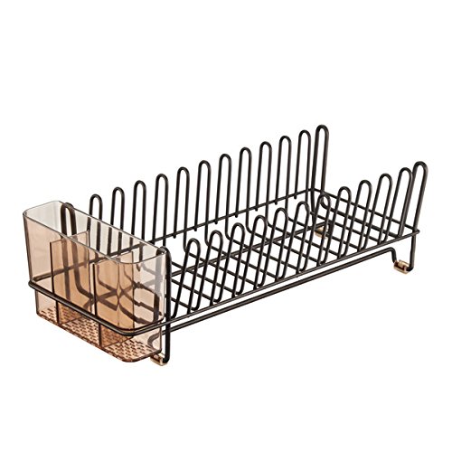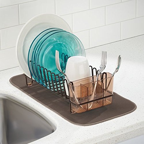 mDesign Kitchen Accessory Set, Compact Dish Drainer, Mini Dish Drying Mat - Set of 2, Bronze/Mocha