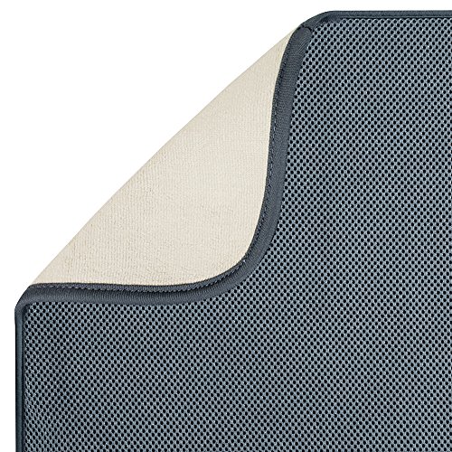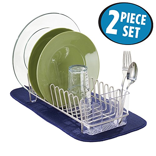 mDesign Kitchen Dish Drying Set, Compact Dish Drainer, Absorbent Dish Drying Mat - Set of 2, Satin/Navy Blue