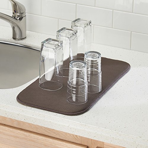 mDesign Kitchen Accessory Set, Compact Dish Drainer, Mini Dish Drying Mat - Set of 2, Satin/Mocha
