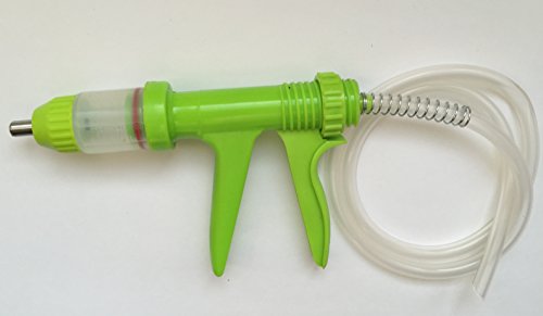 -. Feature : p.i.s.t.o.l grip drench gun, durable plastic frame with stainless steel Pour-on nozzle. Sterilizable 120c / Easy way to spray wormer or fly repellent on animals(cattle, sheep etc.). / Designed for one-hand operation, and are easy to disassemble and clean. / Easy dose adjustment system, accurate setting. Ideal for rapid use on multiple animals. / Attach the medicine bottle via plastic pipe provided, adjust dose and drencher will refill automatically. Color may vary depending on stock availability.