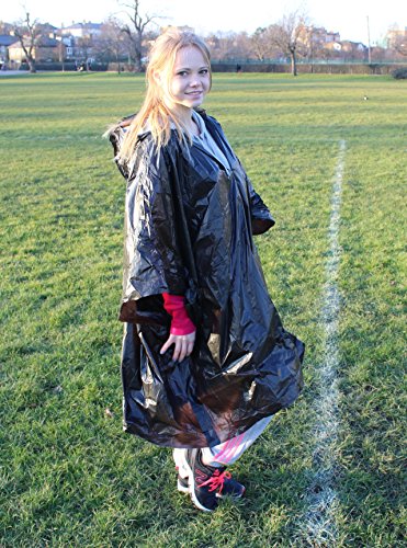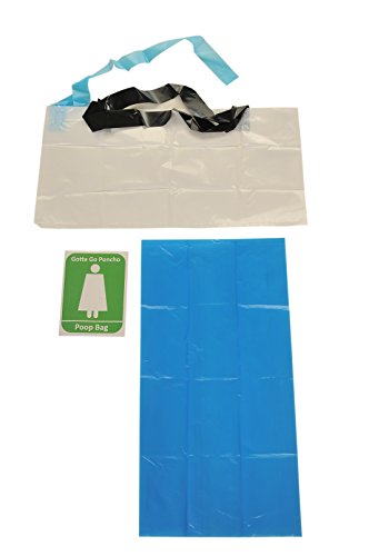 1 Poncho-Gives extra privacy with hood and non-transparent plastic material. Large neck opening opens field of view into poncho. Large arm openings allows for free movement of hands into poncho while using the pee and poop bags.