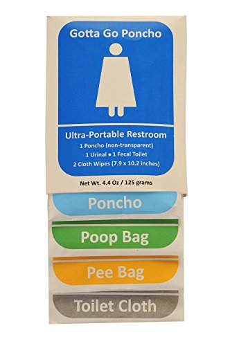Pocket-sized Disposable Restroom - Urinal, Fecal Toilet, Poncho (For Privacy) and Cloth Wipes is Ultra-portable, convenient, and hygienic.