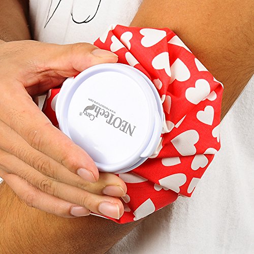 NEOtech Care Ice Bag for injuries & reduce swelling, Cold Pack screw top lid, 5 inch diameter size, hearts design