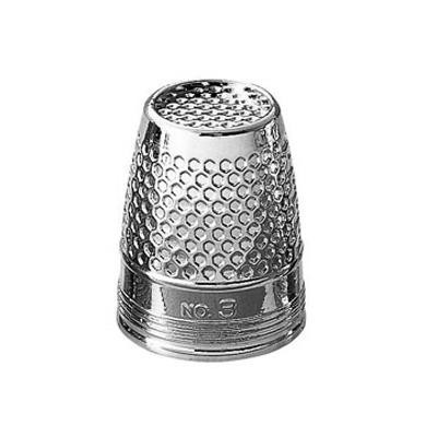 トップに縁の付いた金属製シンブル。