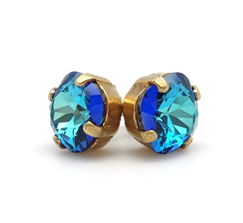 -. Title : Catherine Popesco 8mm Bermuda Blue Swarovski Crystal Gold Plated Stud Earrings