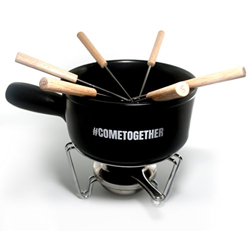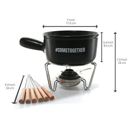 Janazala Heat Resistant Porcelain Fondue Set, "COMETOGETHER" Large Fondue Maker, Fondue Pot For...