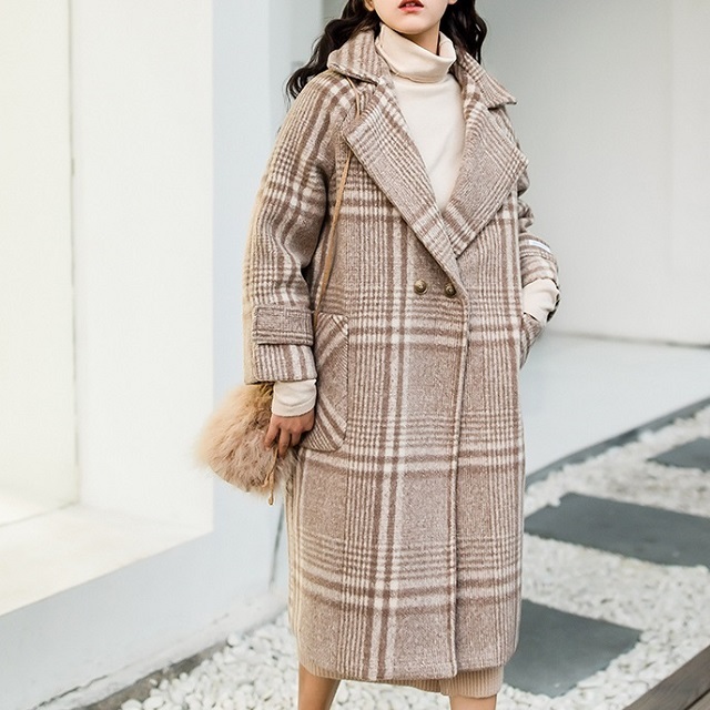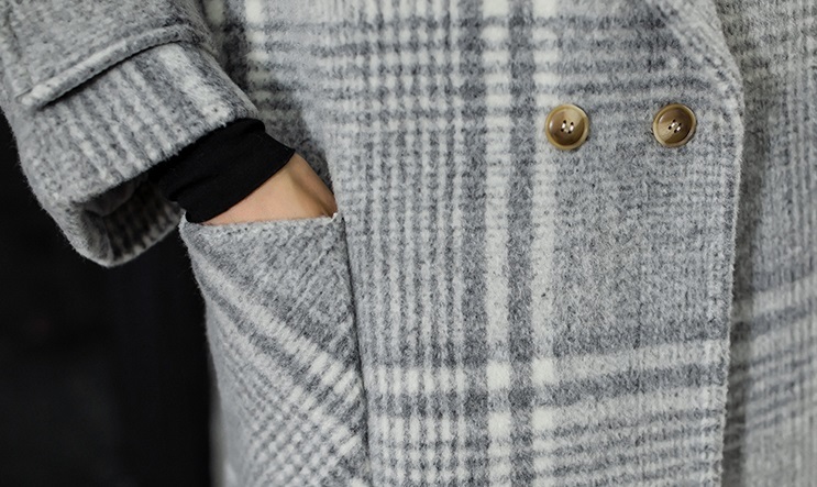 上質なカシミア混で、高見えするチェック柄ロングコートです♪