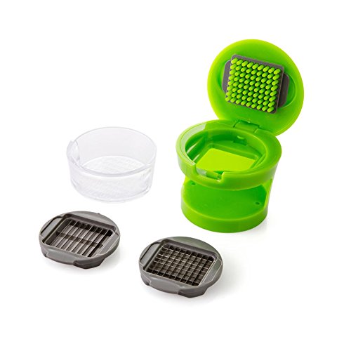 -. Feature : 1. Garlic press is made with durable BPA-FREE plastic, the unique design makes crushing, chopping and mincing garlic so much easier / 2. Two sturdy blades ensure consistent result every single time, no more garlic smell on fingers! / 3. Convenient and Easy To Use. All the minced garlic are conveniently stored in the storage bin for use at any time / 4. One of the best gifts for your kitchen