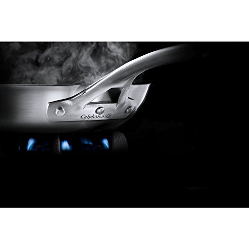 The Calphalon Signature Stainless Steel 12-Inch Omelets Pan is made with five layers of metal that deliver exceptionally even heating and precise temperature control. Three layers of aluminum spread the heat evenly across the entire stainless steel cookware surface, and two stainless steel layers provide a stunning and durable surface that is dishwasher safe and induction capable. The wide, flat bottom and gently sloped sides make the 12-inch Stainless Steel Omelets Pan perfect for preparing eggs and omelets as well as searing steaks, sauteing vegetables or browning potatoes, and it's finished with a beautiful brushed stainless steel handle.Feature