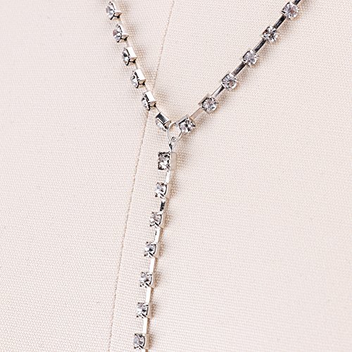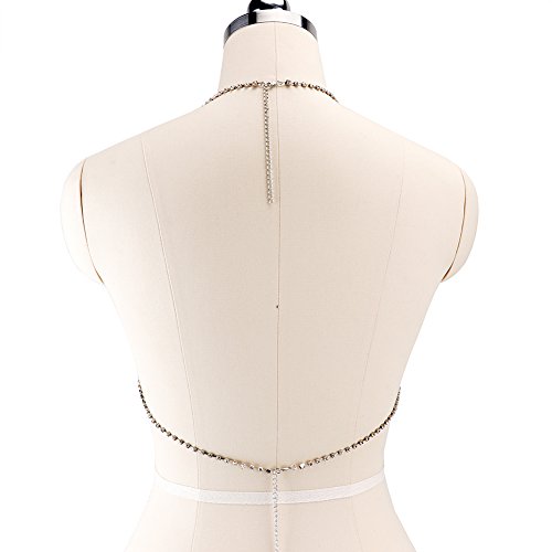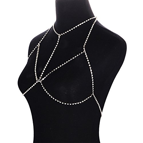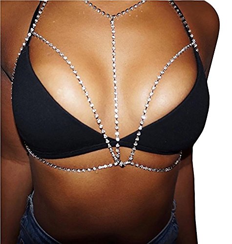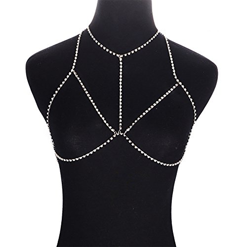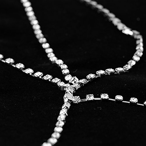 Meelino Women Sexy Harness Pendant Crossover Belly Waist Body Chains Jewelry Flash Shiny Crystal Rhinestone Bikini Bra Necklace Decoration (M, Silver)