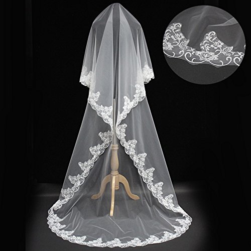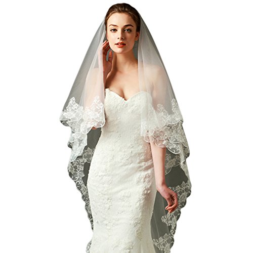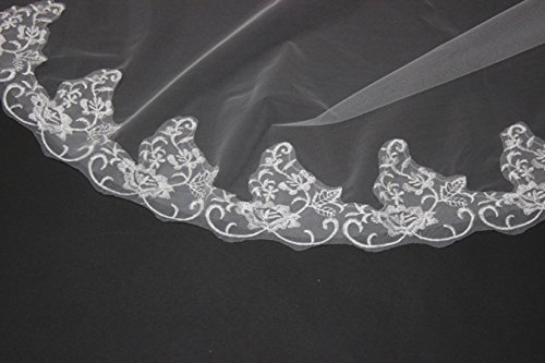 (Fishlove)/Accessories/Scarves/DIRECT FROM USA/Fishlove Long Elegant Single Layer Lace Bridal Wedding Veils For Women Ivory V31