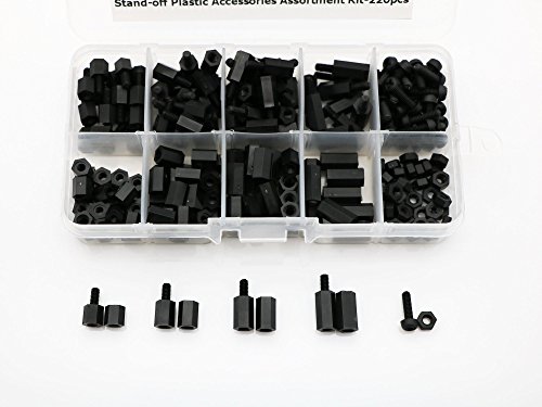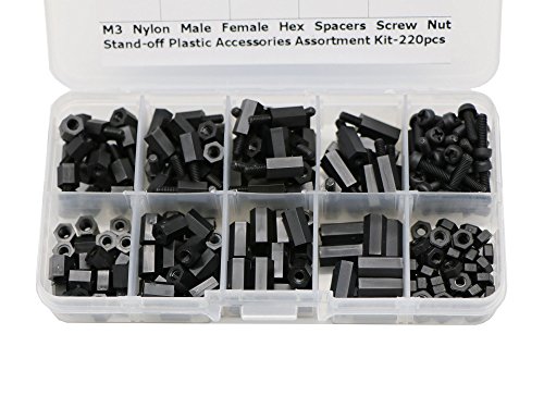 Package Quantity:220 Pcs M3 black color Nylon Hex Spacers Screws Nuts Assortment comes with the beautiful plastic box.