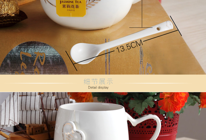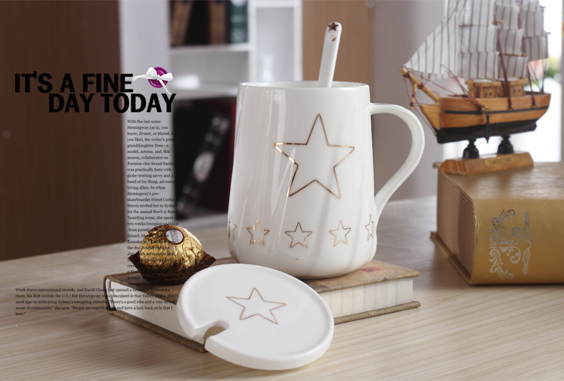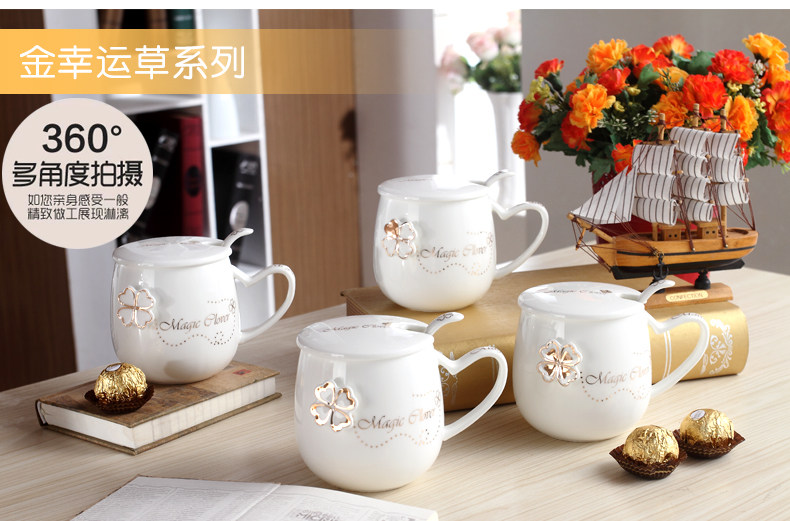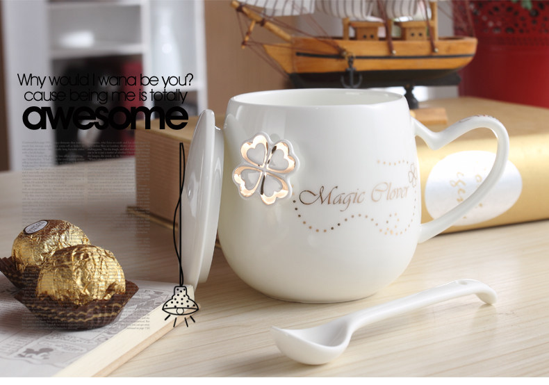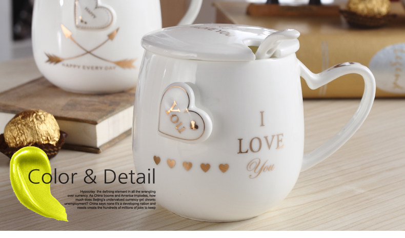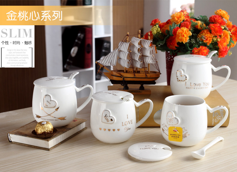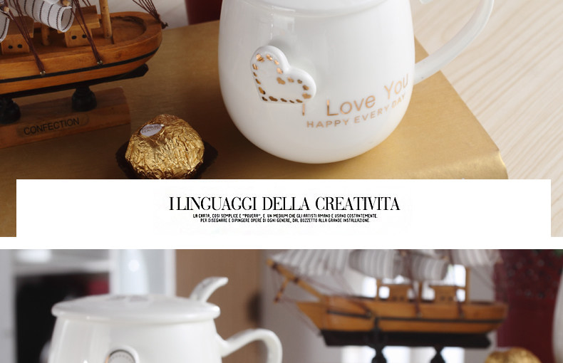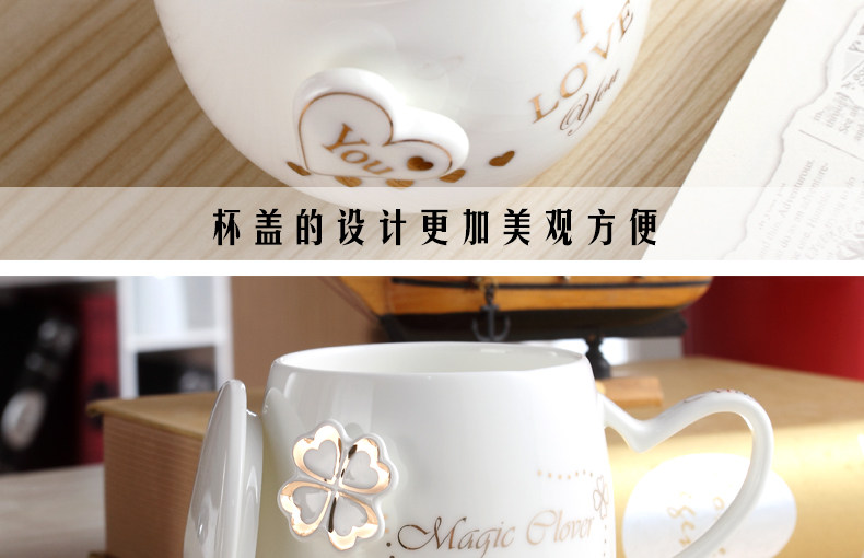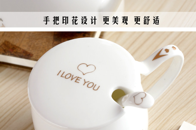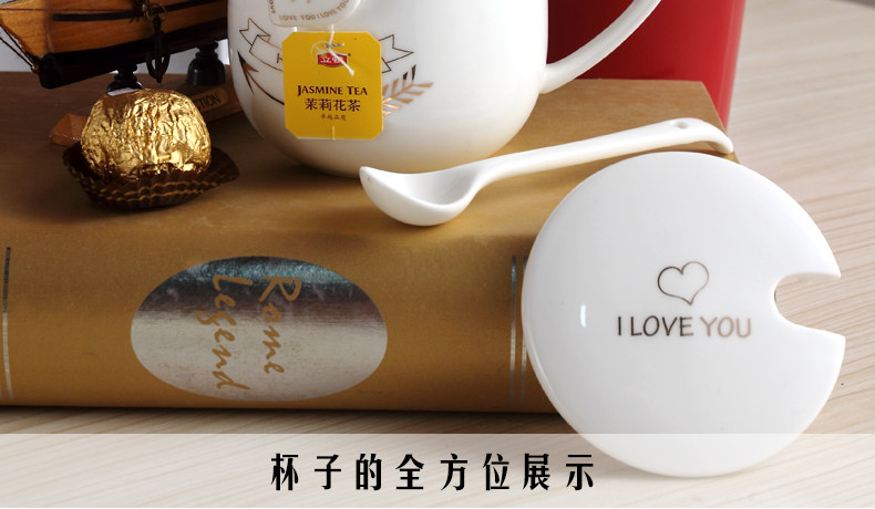 创意个性可爱陶瓷杯子水杯情侣马克杯咖啡牛奶杯带盖勺活动礼品