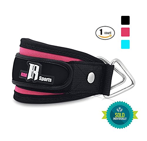 RIMSports ANKLE STRAP ADVANTAGE Some key features of our newly designed ankle strap include the neoprene padding that cushions the back of the ankle, making for a more comfortable workout. The elongated velcro strap was created in such as way as to wrap around the strap, so as to give added support when lifting heavier weights. The double triangular loops on either side of our ankle cuff were uniquely fashioned to allow for ease of use when threading the strap, while also providing unmatched support as you push your cable exercises to the max! RIMSports’ “HOW TO” To get the most out of your new RIMSports ankle strap follow the below instructions: Step One: Attach our RIMSports interchangeable ankle strap to a cable-resistance machine or resistance tubing via the triangular loops. Step Two: Connect the easy open-close metal clip from your machine to the secure triangular closure on the ankle strap to begin your exercise. Step Three: Hold on to your cable machine and move your leg up to waist level and then stretch it backwards, squeezing your glutes as you increase your reps. RIMSports ANKLE STRAP FEATURES - Wide padded strap and durable nylon construction with criss-crossed stricting.
