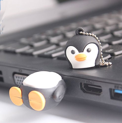 Cute cartoon Penguin USB 2.0 Flash Drives custom Memory Stick thumb with keychain 16GB (Black)