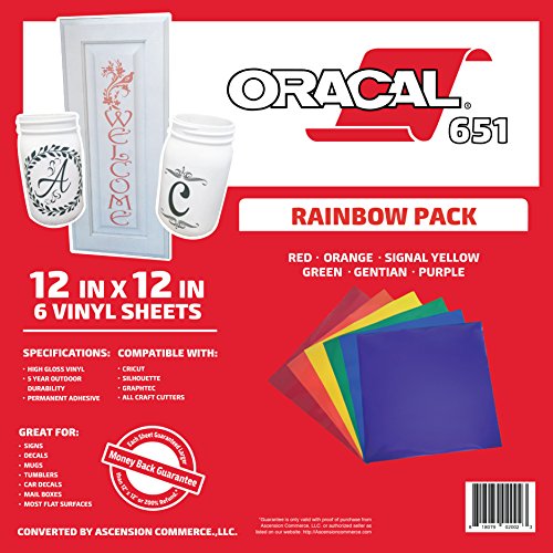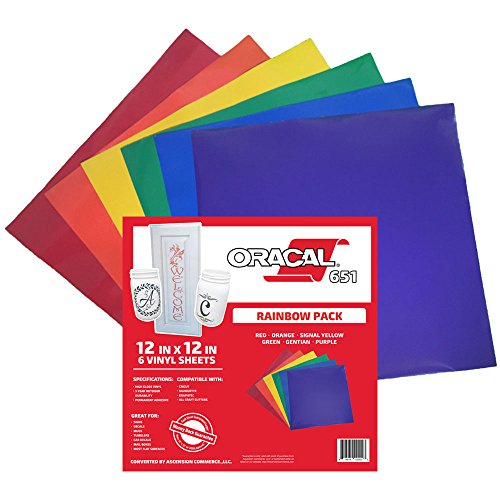 Oracal 651 Rainbow Pack - Adhesive Craft Vinyl for Cricut, Silhouette, Cameo, Craft Cutters, Printers, and Decals - Gloss Finish - Outdoor and Permanent