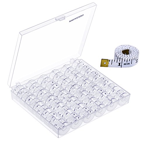 Paxcoo 36 Pcs Transparent Plastic Sewing Machine Bobbins with Case and Soft Measuring Tape for Brother Singer Babylock Janome Kenmore