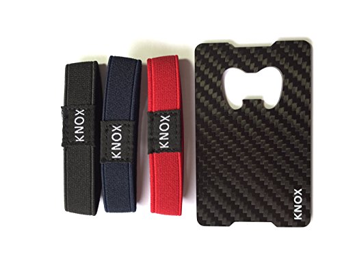 -. Brand : Knox -. Color : Black -. Department : mens -. EAN : 0780347324143 -. Feature : SECURE, CONVENIENT EDC - Each Knox men's wallet holds up to 11 debit or credit cards with room for cash and personal ID. / STRONG, CLASSIC STYLE - Crafted with advanced 3K weave carbon fiber, our money clip offers a slim, lightweight, durable design with rounded comfort edges. / 3 BANDS - Choose bands to match suits, street clothes or travel, Black, Red, or Blue / HANDY BOTTLE OPENER - Knox wallets feature a built-in bottle opener for beer or soda bottle caps with twist-off or pry-off caps. / SATISFACTION GUARANTEE - When you want quality, reliability and impressive customer service, pick Knox and our 30-day money back guarantee. -. PackageQuantity : 1 -. ProductGroup : Apparel -. ProductTypeName : APPAREL -. Size : One Size -. Title : Knox Carbon Fiber Money Clip Wallet for Men, Card Holder With Bottle Opener -. UPC : 780347324143