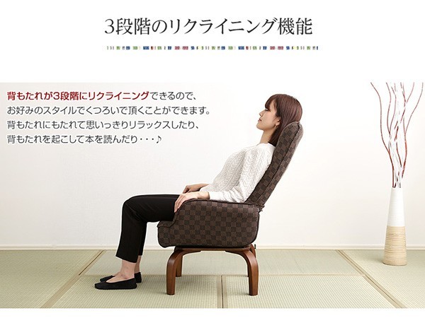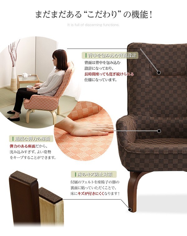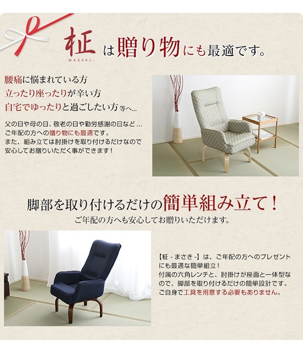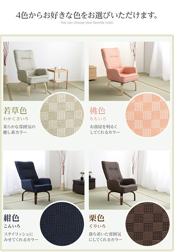 【商品について】360度回転高座椅子(ミドルハイタイプで腰のサポートに)3段階のリクライニング機能 | 柾-まさき-■サイズ:外寸:(約)57x59~80x93cm※商品重量:(約)11kg■カラー:桃色 若草色 栗色 紺色■素材:天然木(ラバーウッド)、ウレタン樹脂塗装、ポリエステル、ウレタンフォーム■その他:・お客様組立商品です・梱包サイズ:(約)57x52x33cm・梱包重量:(約)12.5kg