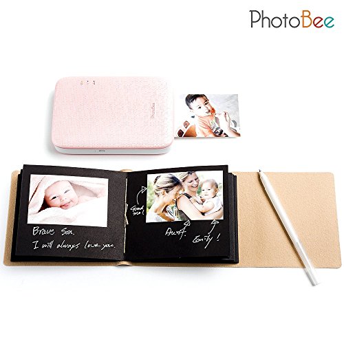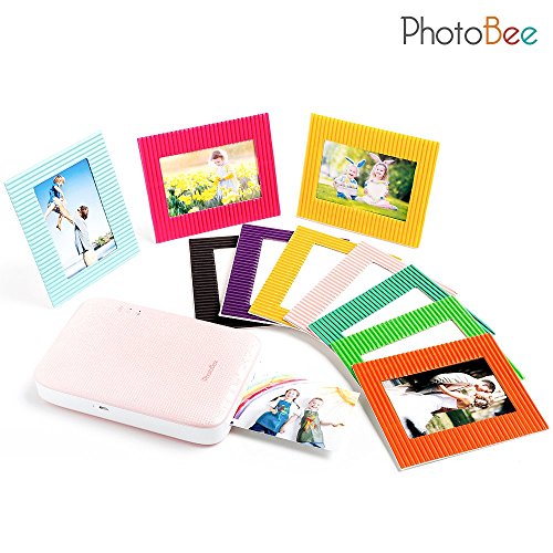 Photobee Portable Photo Printer - Pink (12 sheets of sticky-backed photo paper, 10 paper frames and 1 folding album are included)