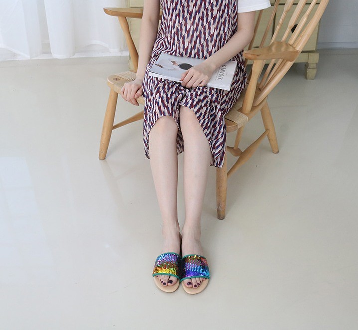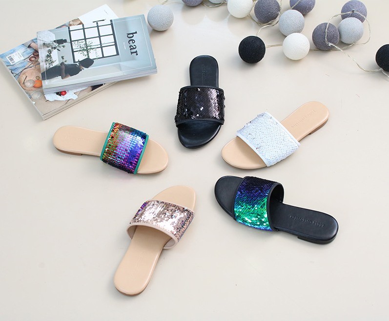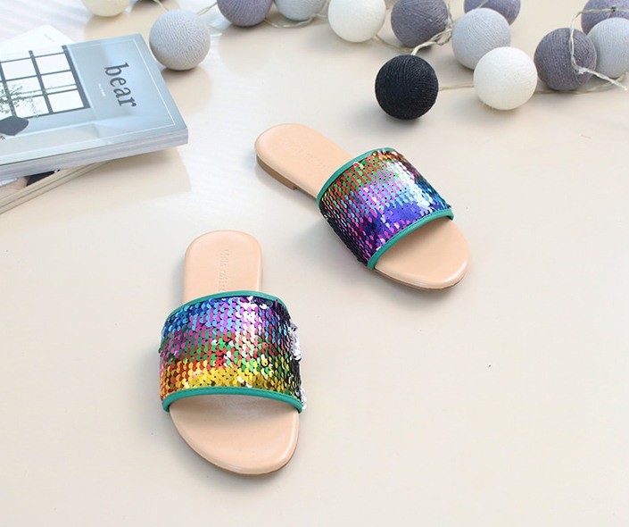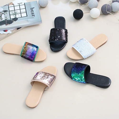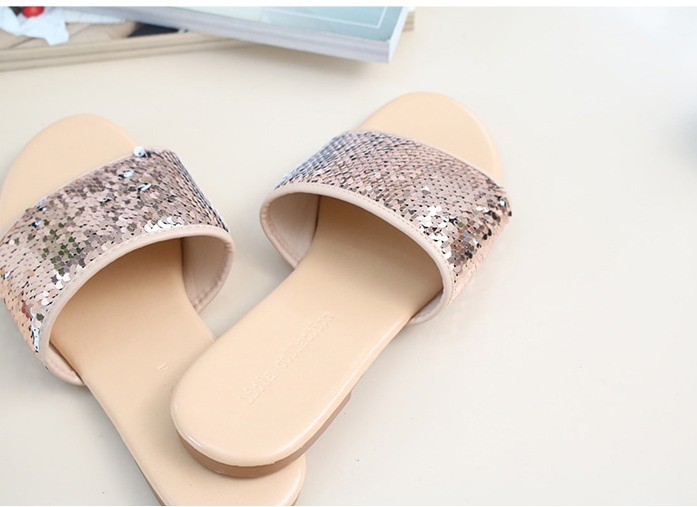 商品名:サンダル レディース ペタンコ フラットヒール キラキラ 2018 夏 ファッション 靴 婦人靴
