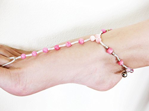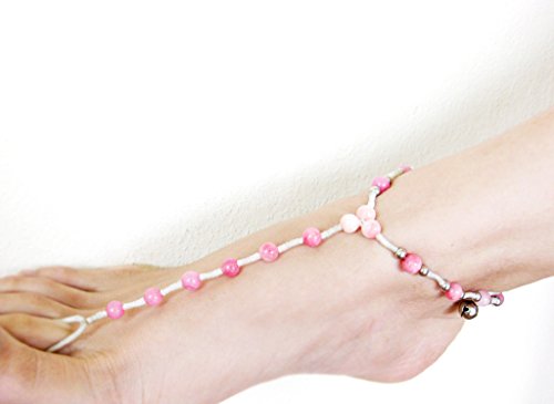 -. Title : Khum Wieng Kham Women's Anklet-toe-Ring Barefoot Sandals Footwear Pink Stone Wax Cord Bohemian