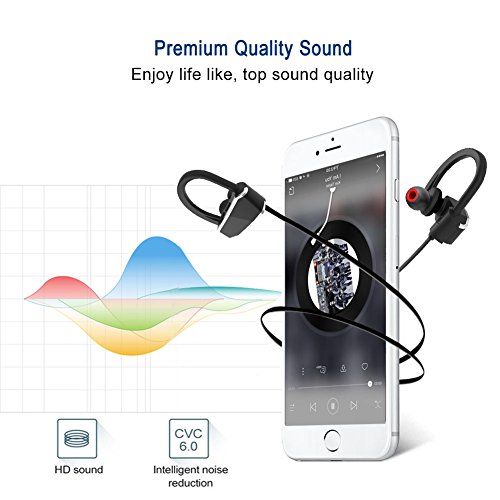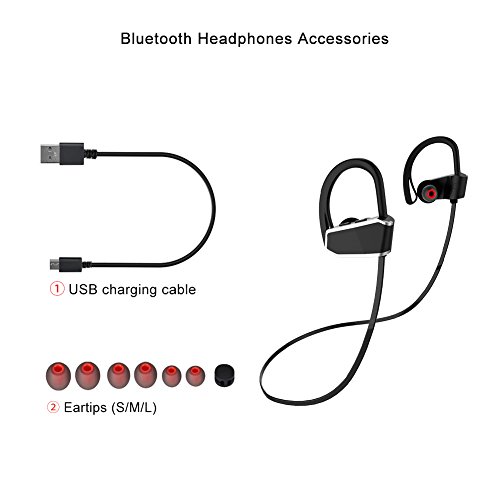 -. Feature : ♬Comfortable & Lightweight♬:Ergonomically designed flexible ear hooks with gel flex silicone headphones to ensure your headphones stay comfortably firm in place to guarantee fatigue free ears and tangle free comfort. Stays on while you exercise.When you are immersed in music, you don't feel the presence of headphones. / ♬HIGH FIDELITY SOUND & Long Standby♬:Noise reduction, featuring latest Bluetooth 4.1 CSR technology and state of the art acoustic components producing incredible HD Stereo sound quality. 2 hours charging time can provide 8 hours constantly play time, 10 days long standby battery life, long enough for wonderful music world. / ♬Simple Controls & Compatible♬:Easy paring, and with Bluetooth 4.4 technology and high quality chip, featuring stable and strong signal transmission. over 30ft effective transmission distance.Simple instructions and easy control, can complete all settings of this headphones by only 3 buttons.Compatible with most Bluetooth enabled smart devices. Android phone and tablets, iPhone and iPad, Windows Phone and Windows tablets,ect. / ♬Waterproof&Sweat Resistance♬:With IPX6 water-resistant shell, You can run in the rain or sweat-proof in the gym to enjoy the music or phone communication freely. But please note do not use it when swimming or showering. / ♬WARRANTY♬:We promise 6-months warranty. Return(within 30 days), Exchange(The first 60 days).Any problems with your headphones, please contact us via hank@inker.com . We will try our best to solve it.