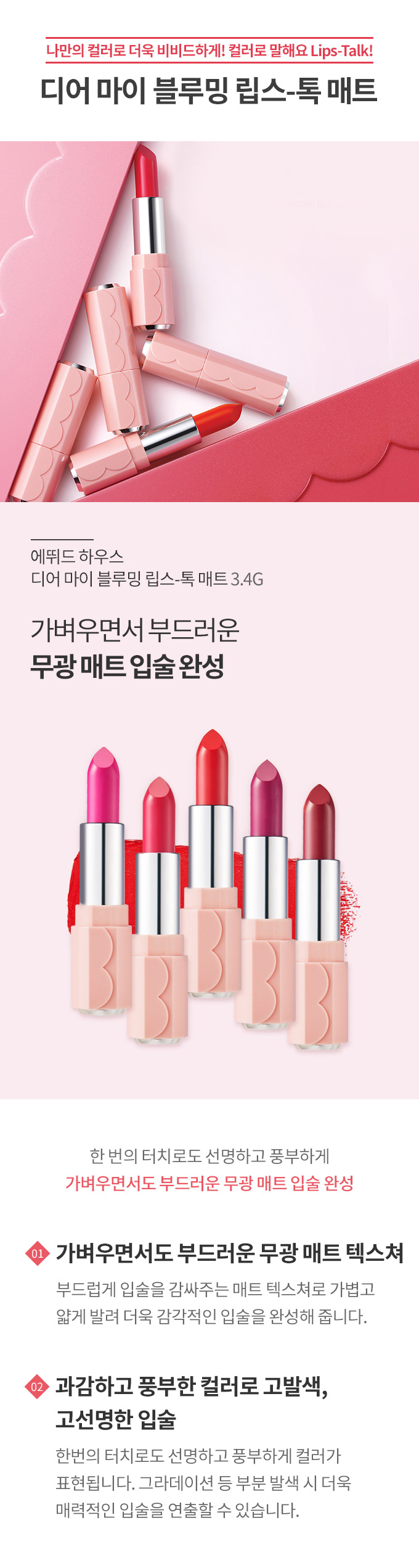 ディアマイブルーミングリップトークマット 3.4g 3種[韓国コスメ]