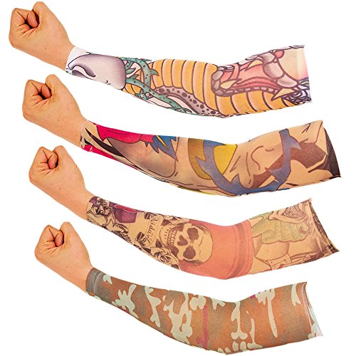 Crenstone Fake Tattoo Sleeves -- Set of 4 Deluxe Tattoo Sleeves (Tribal, Biker, Classic Designs). Realistic looking tattoo sleeves. Includes 4 unique designs (artwork may vary season to season): Tribal Tattoo Sleeve, Biker Tattoo Sleeve and Classic Tattoo Sleeve Designs. Temporary tattoo arm sleeves are easy to slip on and off. One size fits most -- men and women. Perfect for halloween party supplies, party favors, biker costumes, dress up parties and more.Feature