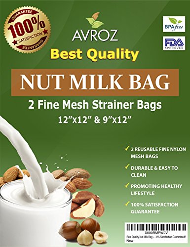 -. Feature : ★★ TIRED OF CHEAP QUALITY NUT MILK BAG STRAINERS WHICH WILL RIP APART AFTER COUPLE OF USES ★★ LOOKING FOR BEST REUSABLE & DURABLE NUT MILK BAG IN THE MARKET USABLE WITH BLENDTEC ➜ Look no further, we have the strongest premium quality Food Grade FDA approved & BPA FREE nut milk bag or mesh strainer available, stronger than cheesecloth, cotton or muslin strainers with double reinforced stitched edges made of high quality fine nylon filtering blendtec mixes / ★★ NO WASTE, EASY TO CLEAN, PULP FREE & QUICK DRY MESH STRAINER ★★ Our nut milk bags are designed keeping in mind your kitchen needs ➜ With round bottom or U shape for easy cleaning compared to square nut milk bags leaving pulp and particles getting stuck in the corners. Use it, wash with warm soap water, rinse it and air dry it. / ★★ ENJOY HEALTHY VEGAN LIFE STYLE WITH OUR NUT MILK BAGS OR MESH STRAINER ★★ Promote healthy foods and drinks ➜ Instead of buying cheap nut milks i.e. almond milk, coconut milk or cashew milk; make your own mom's choice from scratch using organic, raw nuts, seeds & fruits paying for itself in no time bringing a whole new meaning, no antibiotics or added hormones & preservatives just fresh or dried nuts from trees. / ★★ RISK FREE 90 DAYS MONEY-BACK GUARANTEE ★★ We stand behind our premium quality nut milk bags or pro quality nut milk bag and will ensure you are a happy user also comes with FREE healthy choice recipe e-book o you can try different recipes every day of the week making juices drinks or nut milks i.e.almond milk, cashew milk, coconut milk, hazelnut milk. / ★★ FITS ALL OF YOUR STRAINER, FILTERING & SPROUTING NEEDS ★★ PACK OF 2 FINE NUT MILK BAGS 12"x12" (BIG) & 9"x12" (LARGE) INCLUDED FOR THE P.R.ICE OF ONE ➜ Instead of 1 nut milk bag like our competition, we have included 2 bags fits all of your needs. Perfect for making your own homemade: Almond nut milk, soy milk, cashew milk, coconut milk, rice milk, fruit juices, vegetable juices, h.e.m.p milk, flax milk, blendtec or vitamix, cold brew coffee, stew straining, cheese maker & sprouting seeds.