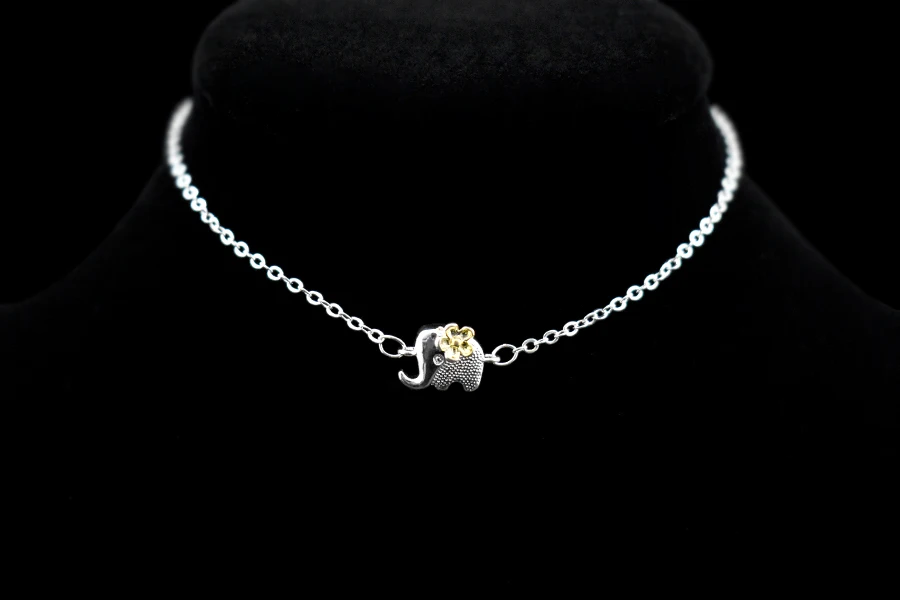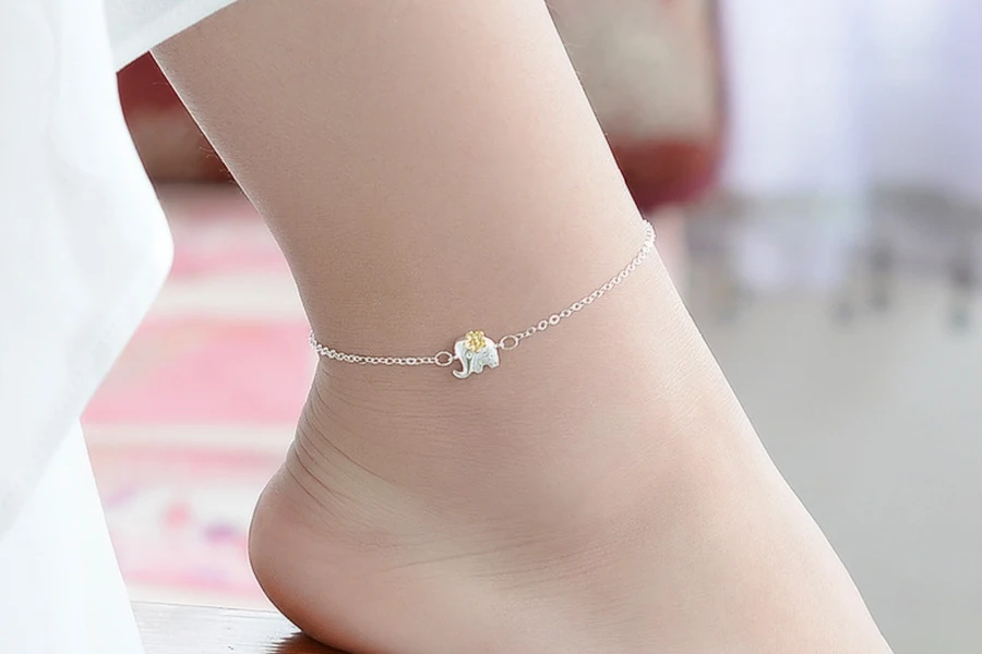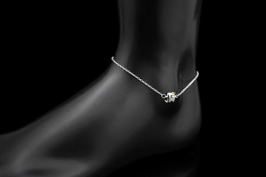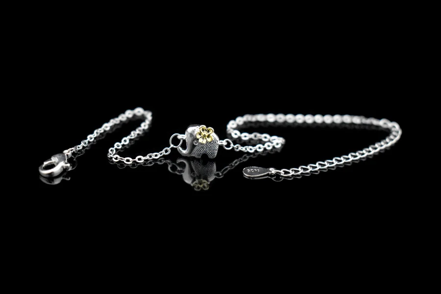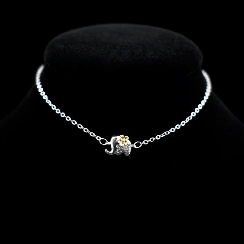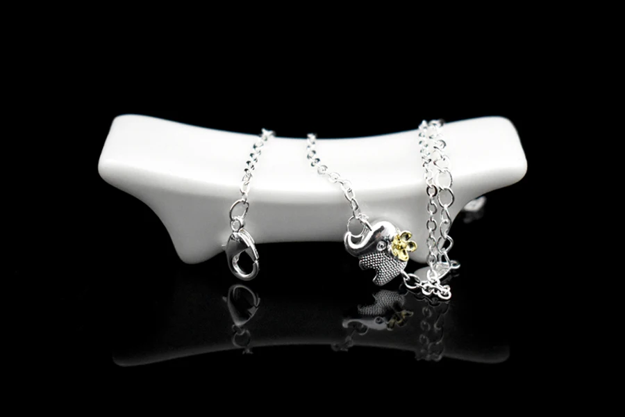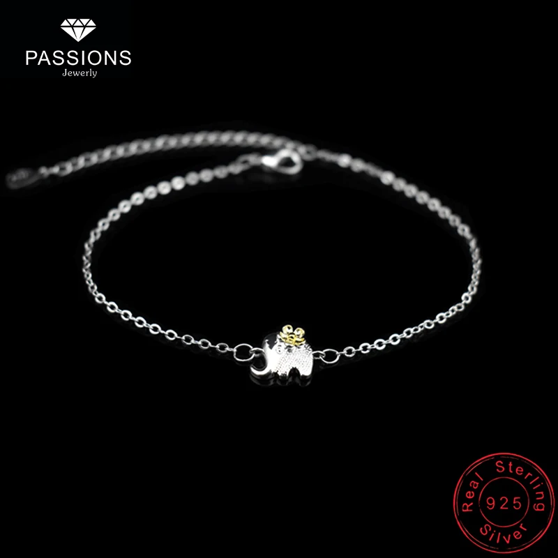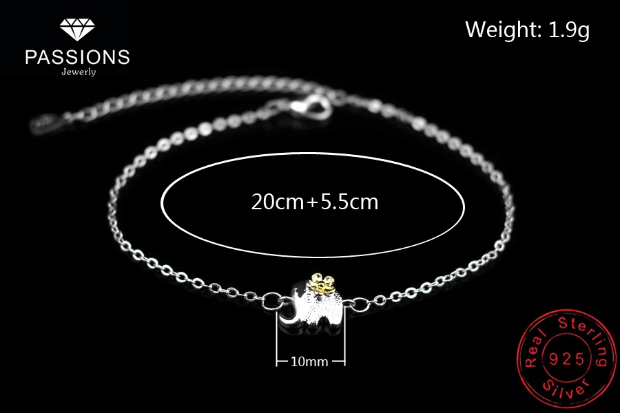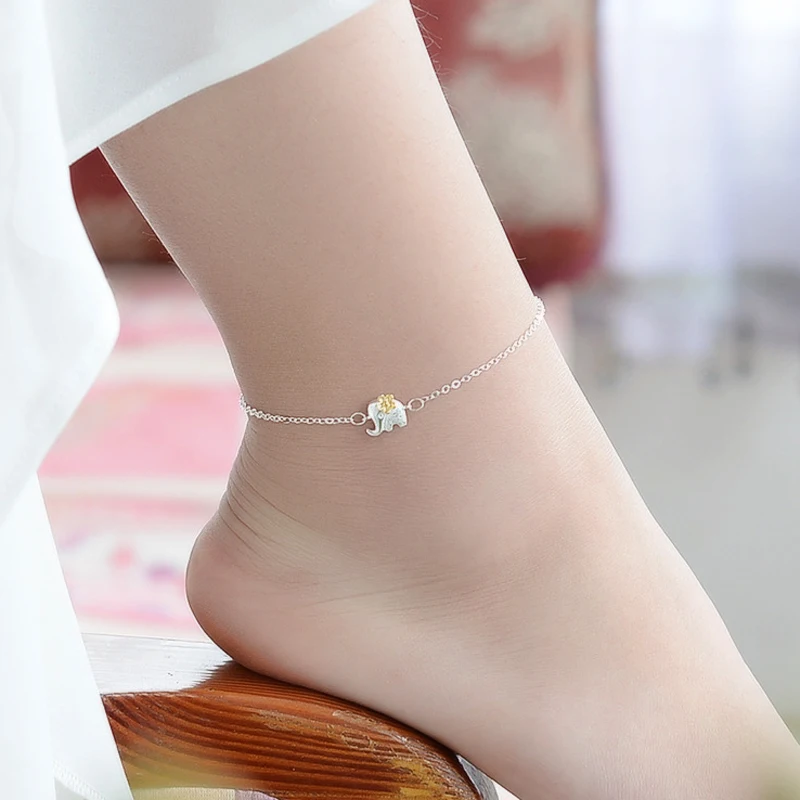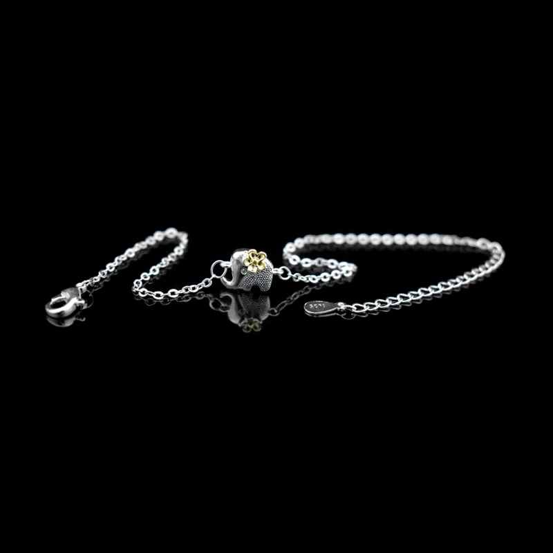Type:925 Sterling Silver Gold Flower Elephant Pendant Anklets