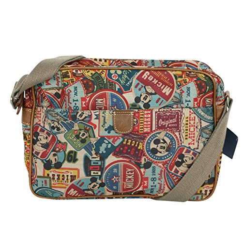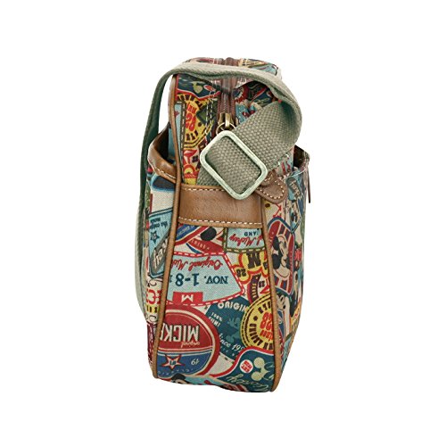 Disney Mickey Label Pattern Canvas Mini Shoulder Bag Retro Messenger Bag 014