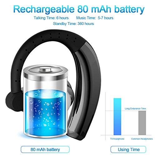 Bluetooth Headset, SQDeal Wireless Bluetooth Earphone with Ear Hook for Android iOS Smartphones