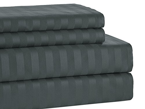 Addy Home 4 Piece T500 100% Egyptian Cotton Damask Stripe Set, Queen, Dark Slate