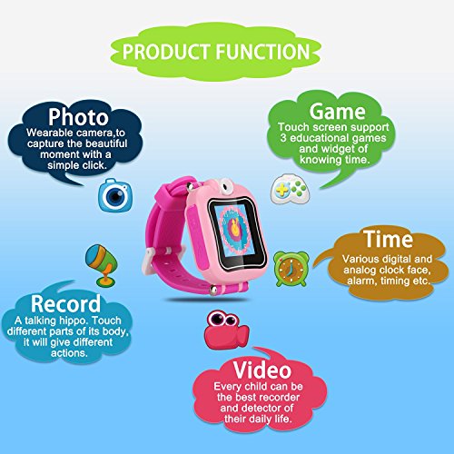 This is a bright and colorful 1.5-inch touch screen children's game smart watch, teaching and entertainment 4 to 12 year old child,This is just a watch, but also innovative children's electronic learning toys, can make the children arrange their time easy! Kids will love it!Color: Pink
