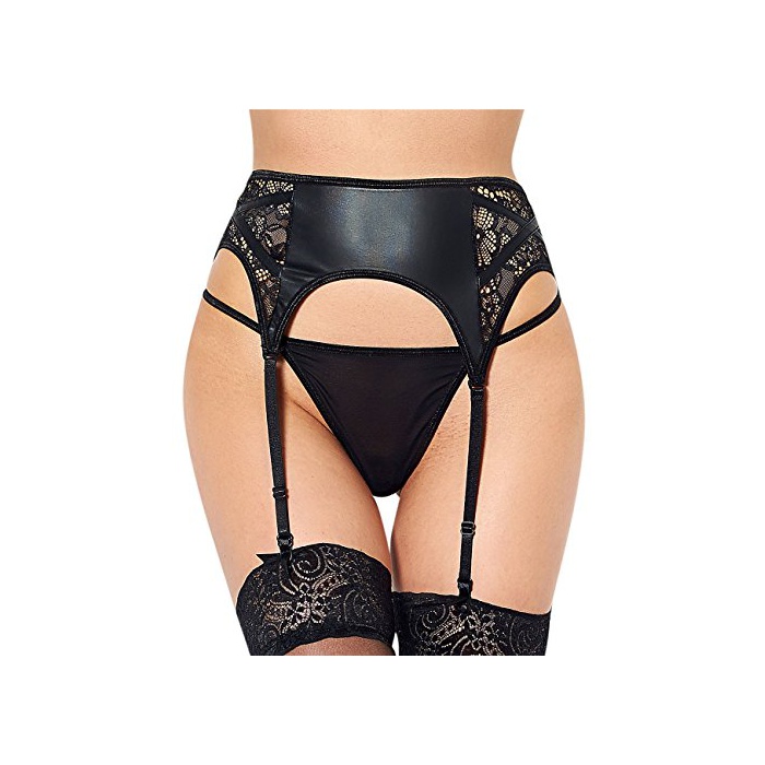 Ohyeahlady ohyeahlady 레이디스 섹시인 가터벨트 레이스 꽃무늬 레더 가터 투명한 쇼츠 G스트링 T백 Garter Panties 큰 사이즈 블랙 (2XL)