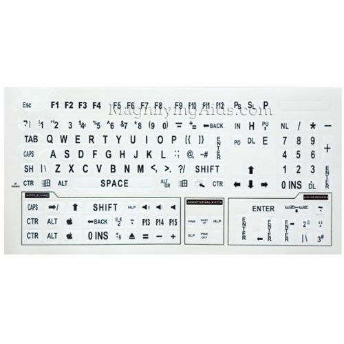 Black Letters on White Off White Ivory Background Large Print Opaque Keyboard Stickers Labels Stick-On - Durable Lexan® Polycarbonate, 3M® Adhesive Printed Sub-Surface. Lexan® will NOT Curl, Slip, or Ooze