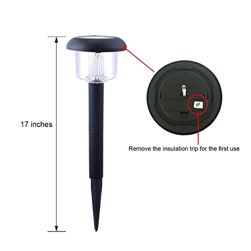 - Easy to install and use-- just push the stake into the soft earth, takes few seconds. Before charging, need to turn 30 degrees counterclockwise to separate the light, then TAKE INSULATION TRIP OUT on the light cover.