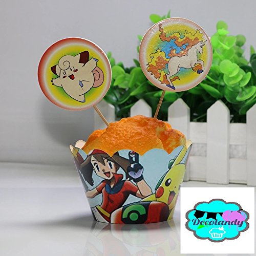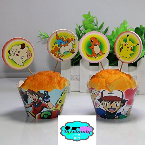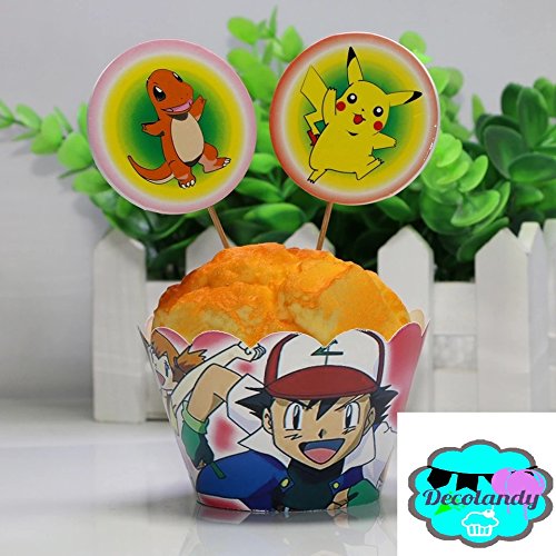 12 sets Pokemon Go Pikachu Cupcakes wrappers and toppers,pokemon party decoration,kids party decoration,cupcake toppers