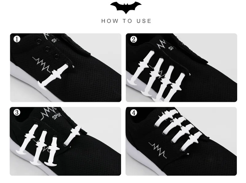 A Set number of:16 Roots , Easy Sneaker Sport Shoe Lace Bat shape