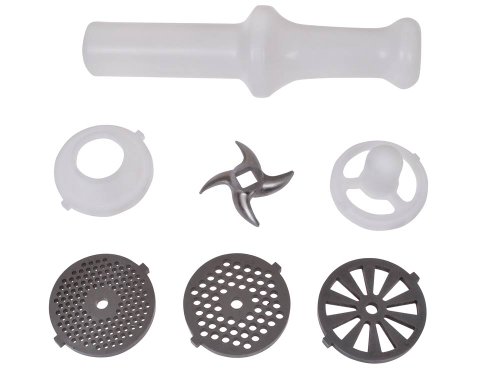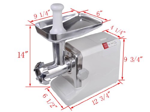 High Quality Electric Industrial Butcher Shop Meat Grinder 2.6 HP 2000 Watt. This Versatile & Multi-Function meat grinder enables you to make more home-cooked meals such as burgers, meatloaf, sausage, and many more. This cutlery-grade stainless steel cutting blade and three cutting plates produce coarse, medium and fine grinds of meat. A healthier life starts here preparing your own food, controlling exactly what ingredients you choose to eat. This is ideal for any kitchen or supermarket generating high quality consistent proportional cuts every time. Material: Cast aluminum feeding hopper. Cast aluminum auger & auger housing Dimension: as shown in the picture Voltage: 110V/ 60HZ Power: 2000W peak output (2.6HP) rated motor NOTE: Please Refer To The Manual Before Use Features: All-metal head and Hopper plate Electronic stop & reset Detachable tube, screw 3 speeds (high, low, & reverse) Food pusher and Kubbe Attachment 3 heavy-duty steel cutting plates (fine, medium, coarse) Owners manual Condition: Brand new Color: WhiteFeature
