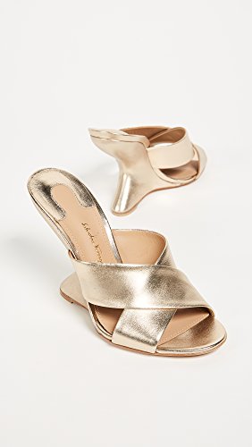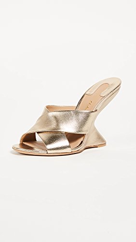 Product DescriptionMules just got a lot more glamorous with these Salvatore Ferragamo sandals, from the boldly curving pompadour heel to the shimmering metallic leather.0