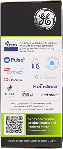 GE Z-Wave Wireless Smart Lighting Control Outdoor Module, On/Off, Plug-In, Black, Works with Amazon Alexa, 12720