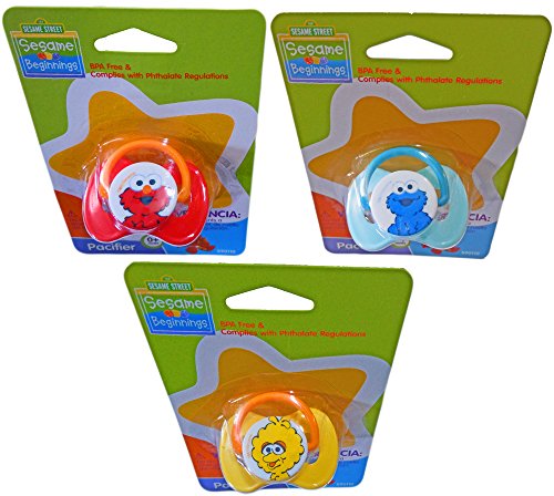 -. Feature : Includes (3) Pacifiers (1 Elmo, 1 Cookie Monster, & 1 Big Bird) / BPA and Phthalate free pacifier / Helps soothe and calm baby / For babies 0-24 months old / Fun Sesame Beginnings Characters