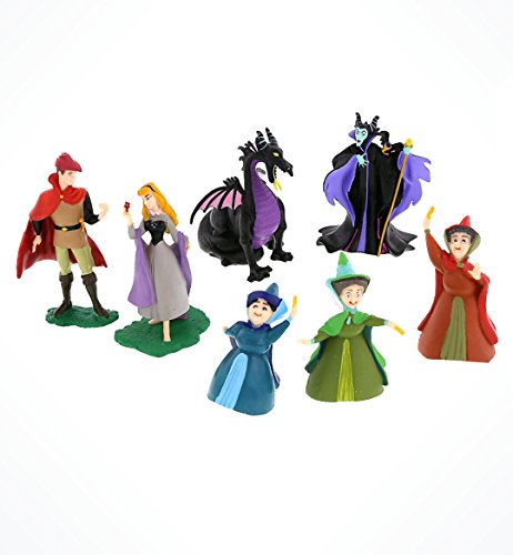 -. Feature : Sleeping Beauty Figure Set / 7 Figurines: Aurora, P.R.Ince Phillipp, Maleficent, Dragon & 3 Fairies / Great Cake Toppers! / Figures up to 3" tall