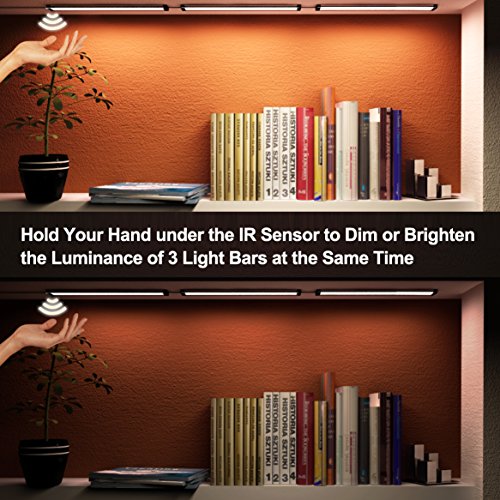 DIMMABLE: Hold your hand under IR sensor to dim or brighten the luminance of 3 strips gradually; remove hand when desirable brightness is reached