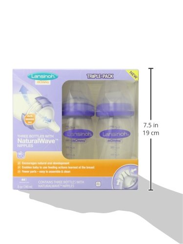 Lansinoh mOmma Breastmilk Feeding Bottle with NaturalWave Nipple, 8 Ounce, 3 Count, BPA Free and BPS Free