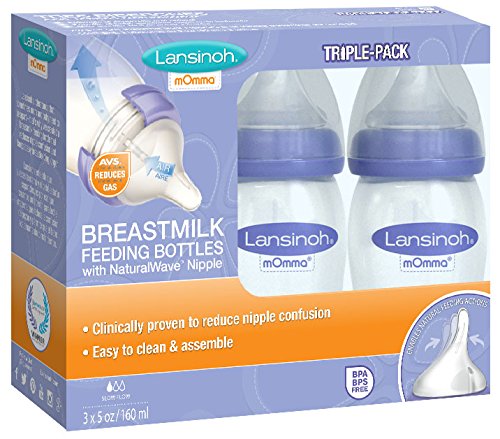 Lansinoh mOmma Breastmilk Feeding Bottle with NaturalWave Nipple, 5 Ounce, 3 Count, BPA Free and BPS Free